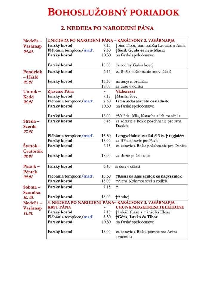 1. nedeľa po narodení pána